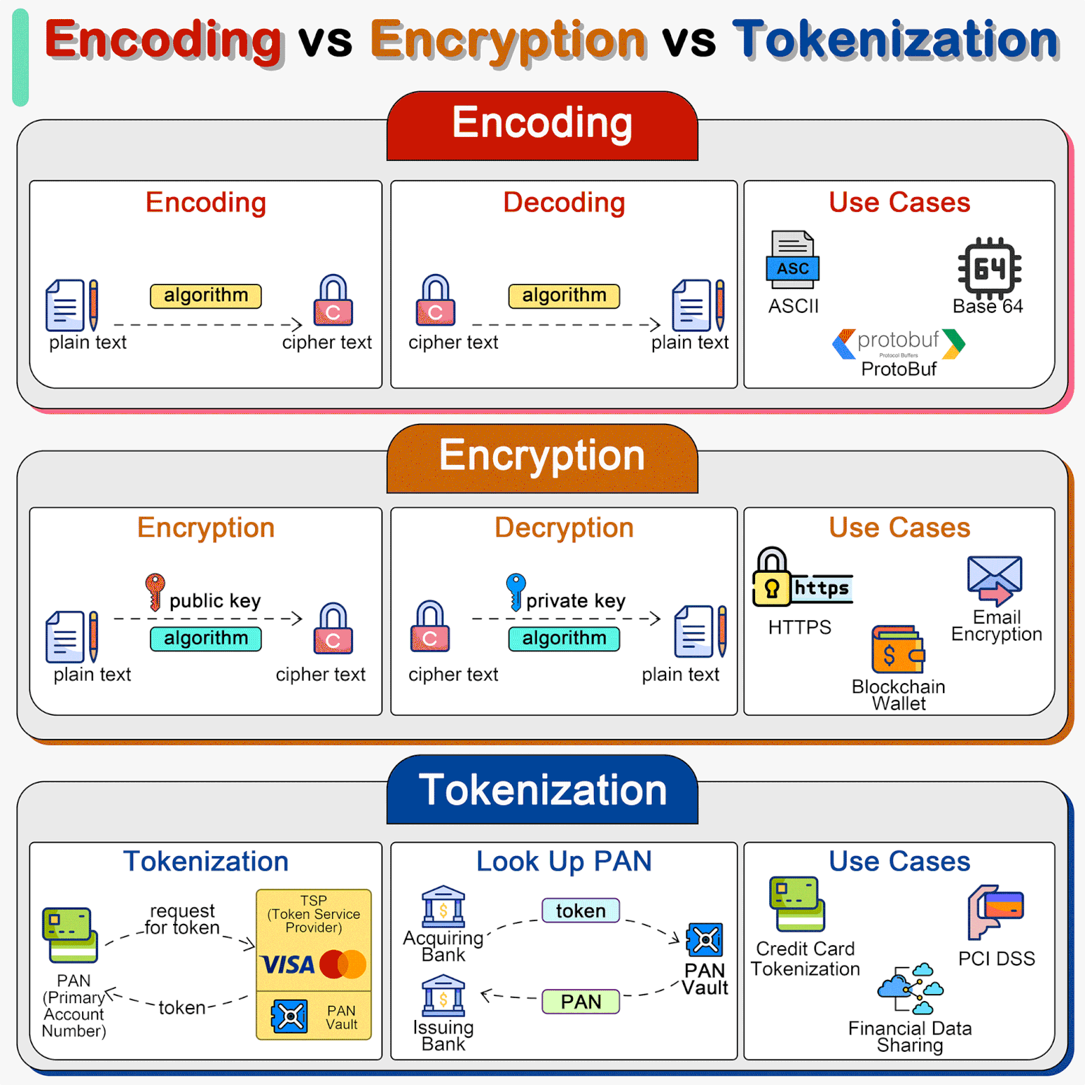 # Encoding vs Encryption vs Tokenization